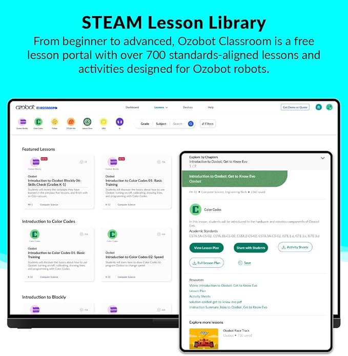 - EXCLUSIVE EDUCATIONAL CONTENT: The Crawler is supported by specialized lesson content available only in Ozobot Classroom. This exclusive material is tailored to enhance the educational experience, providing structured, curriculum-aligned activities that make learning with Evo more impactful.