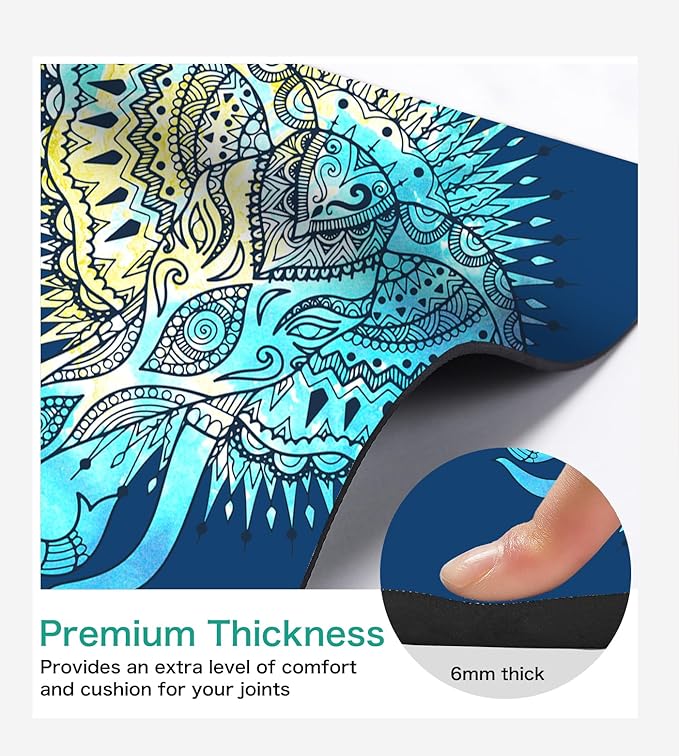 - Standard Size: 72"(183cm) x 24" (61cm); offers adequate space to fit any type of exercise like yoga, pilates, bikram, and fitness exercise. the 6mm extra thick, high density provides excellent cushioning and soft. All our mats come with a free carry bag for easy transport from home to yoga class