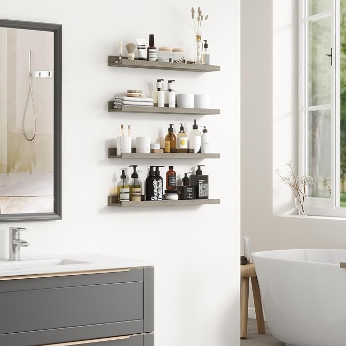 Picture Ledge Shelf - 24 Inches Floating Shelves Set of 2 - Rustic Elm Wood Ledge Shelves for Toys Storage, Kids Bookshelf Wall Mounted for Bedroom, Living Room, Kitchen - 24 Inches - Grey