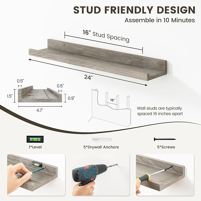 - 【Easy and Quick Installation】Our Picture Ledge Shelves are designed for seamless installation. The package includes all the necessary hardware needed to mount it easily onto any wall space. Just follow the simple instructions provided, and your wall shelves will be ready for use in minutes.