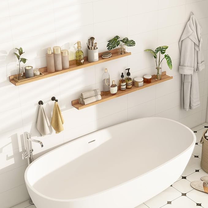 - 【Seamless Installation】Our Picture Ledge Shelves set is designed for easy and simple installation. The package includes all the necessary hardware to get your wood floating shelves up on the wall in no time. Follow the instructions provided, and your wall shelf will be ready to use within minutes.
