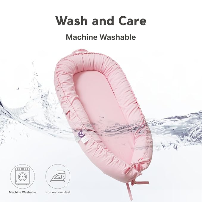 Infant Lounger, Baby Nest Cover for Baby Girls & Boys, Newborn Essentials for Baby 0-18 Months, 100% Cotton Breathable(Misty Rose)