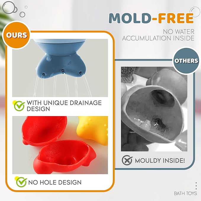 - [Mold Free and Easy Storage] The suction cup net can store all the toys and drain water
