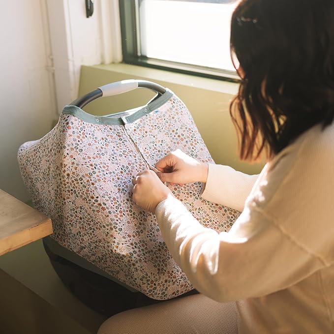 Little Unicorn Breathable Car Seat Canopy | Magnetic Closure Cover & Universal Fit | Protection & Privacy for Baby (Pressed Petals)