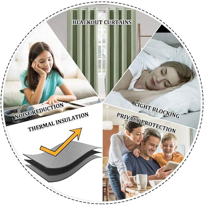 - TRIPE WEAVE TECHNOLOGY:We adopt tripe weave technology to make material. With the help of this technology, curtains could insulate the room from the heat and cold all the year, so that it will save energy. Also,curtains could reduce the noise to keep your room quiet. Blackout curtains could provide you a comfortable environment with privacy.