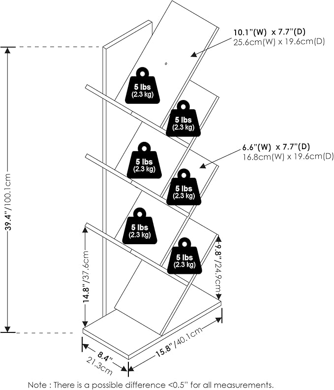 - With versatile functionality, it can serve as a bookshelf, display stand, or organizer. Each shelf hold 5 lbs. Fits Space, Fits Budget.