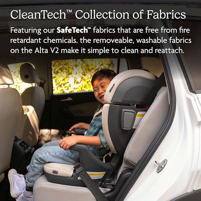- A Chemical-Free Choice: Keep baby safe from day one with our original fire retardant free fabric. These SafeTech fabrics on the Alta V2 are not treated and contain no harmful chemicals anywhere on the seat.