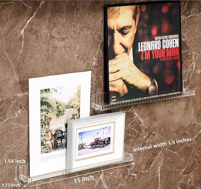 - SIZE:15x1.77x1.58(LxWxH)inch/each,5mm thickness.The inner diameter of the acrylic shelf is 1.5"(Please confirm that the bottle diameter is not greater than 1.5" before purchase)package include 4 pieces of acrylic wall book shelf and install hardware,if use it as nail polish organizer,holds up to 60 bottles of nail polish (actual number may vary based on size and shape of bottles),each wall floating shelf is individual,It can be installed in a row or separately according to your preference.