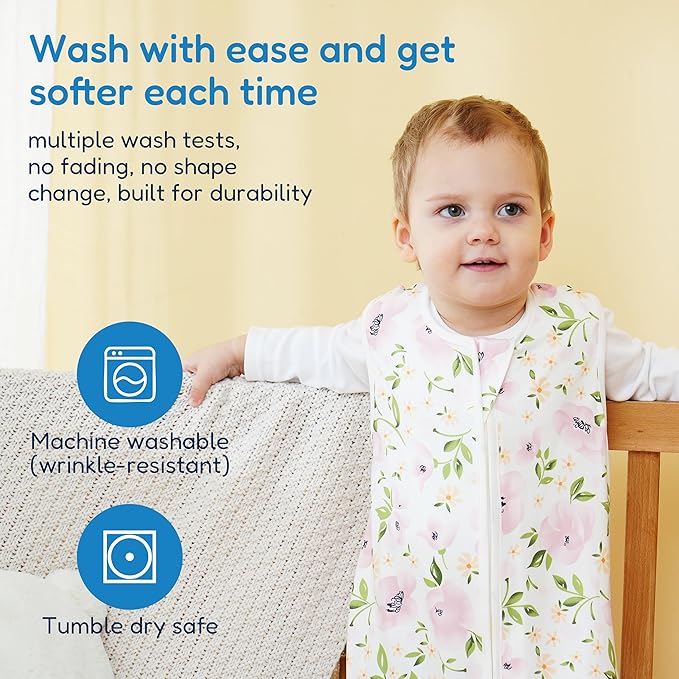 - Softer for longer, Lasting Comfort: With every wash,our sleep bag becomes more softer and more malleable ; molds gently to baby’s skin; machine washing; tested over 10,000 washes with no deformation, damage, or fading; durable comfort for everyday use