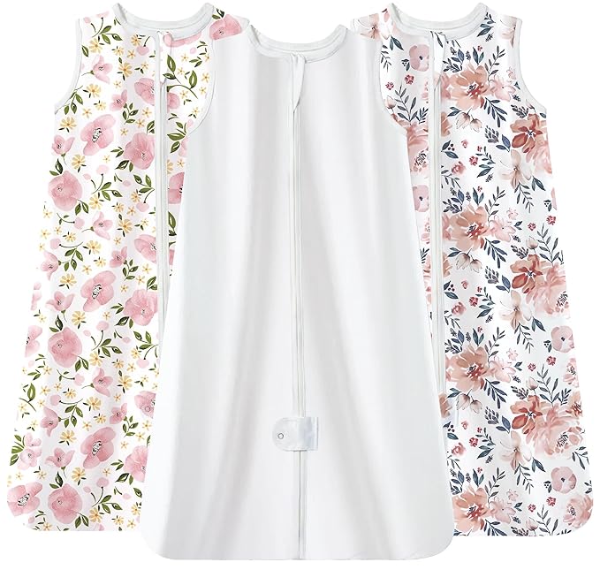 TotAha Sleep Sack 0-6 Months 3-Pack,Stretchy,Buttery Soft Swaddle Transition Sleeping Bag,Light Baby Wearable Blanket with 2-Way Safe Zippers for Girls, 0.5 TOG