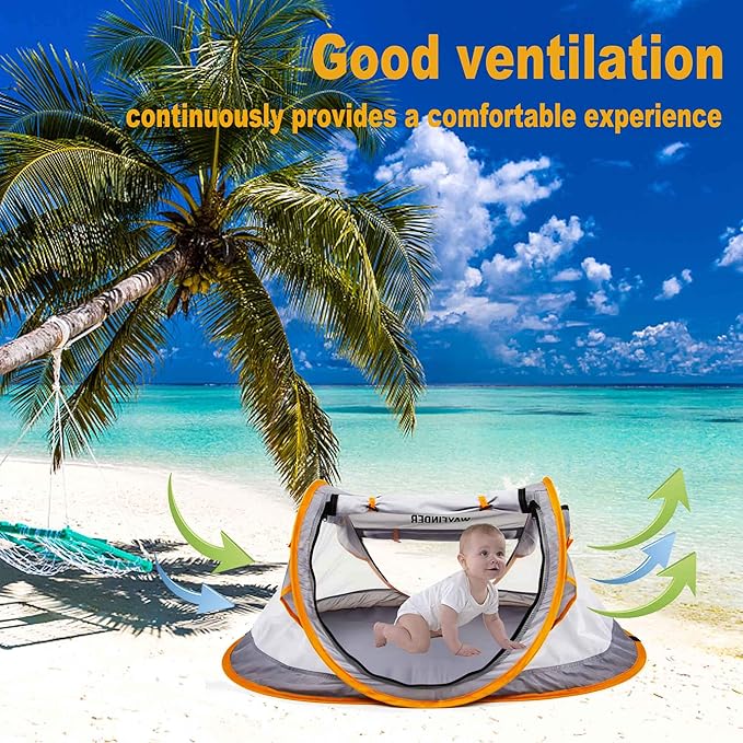 - Large Size-large than all most any baby beach tent, opened:108x65x50cm/42.5x25.6x19.6inches, spacious for your baby to play and sleep in, also Suitable for a pet tent.