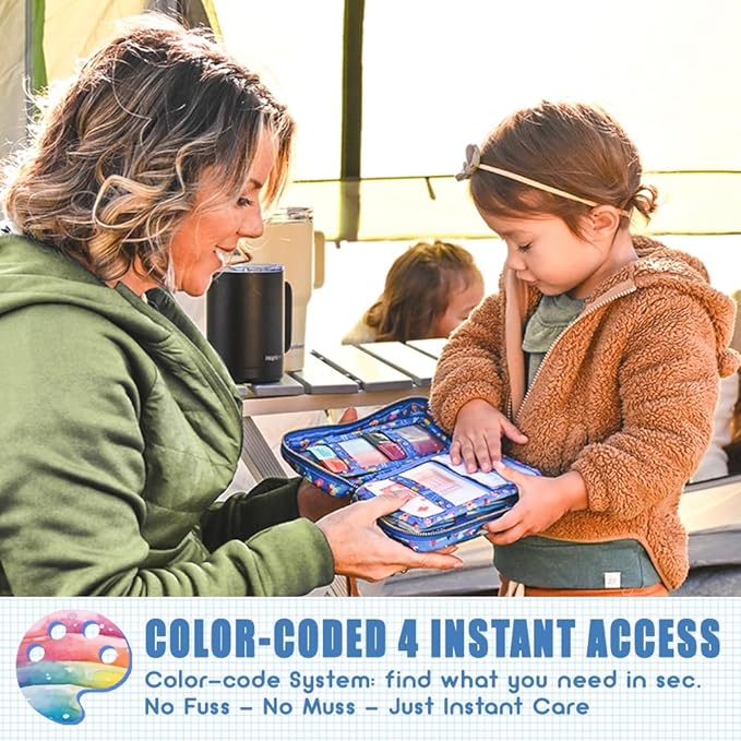 - ๐ Travel-Friendly Organization: Our first aid kit is meticulously designed to ensure quick access during travel emergencies. Our supplies are neatly organized in designated compartments, all in one compact and portable storage bag, allowing for quick grabs during emergencies, making it perfect for parents on the go!