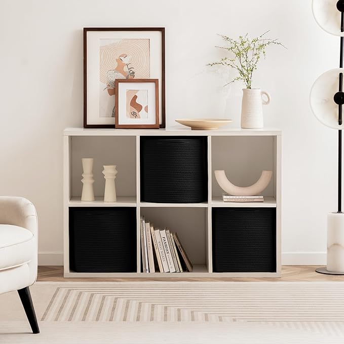 joybest Cube Storage Bins Set of 4, 13inch Cube Baskets Organizer for Nursery, Square Cotton Rope Baskets for Shelves Organizing, Kids Toy, Closet Storage, Black