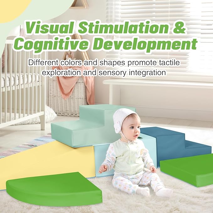 - High-quality Safety Materials: Crafted from environmentally friendly soft cotton and soft PU leather, ensuring safety and durability for your little one. Our toddler climbing toy 6-Piece Set includes 2 stairs, 2 half-moon, 1 square and 1 slide. Non-toxic, odorless, and easy to clean, this foam climbing toy provides peace of mind for parents. Our climbing sets have a unique patented design that your child is sure to love.