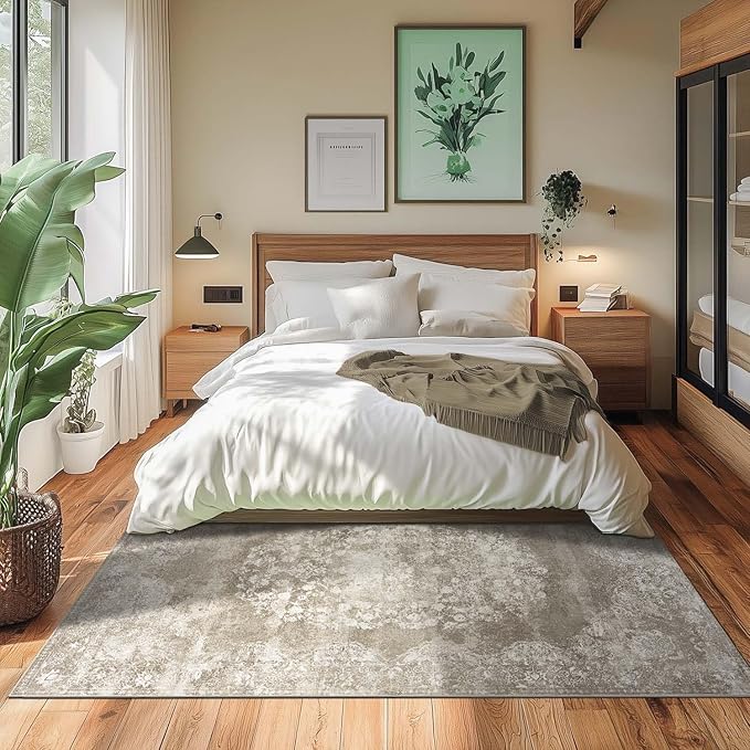 jinchan Vintage Floral 4x6 Area Rugs - Machine Washable Distressed Design Soft Ultra-Thin Low-Pile Non-Slip Carpet for Entryway Kitchen Bedroom Nursery Living Room Dining Room (4x6ft,Brown)