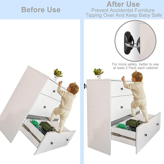 - 【BABY SAFETY】:We know how curious children can be. When toddlers climb on furniture, there is a risk of tipping accidents. The good news is that with the Furniture Anchors, you can help keep your furniture secure and your child safe. Even under pressures of up to 420 pounds, this furniture anchors for baby proofing keeps your furniture upright and secure. So, give yourself peace of mind and invest in this essential furniture anti tip kit. Protect your precious child with the Furniture Anchors today!