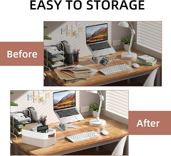 - Easy to Clean: The mini storage bins are easy to clean. You can dust the basket with a soft cloth and light soapy water when needed. It is not recommended to machine wash it as there is a metal frame support inside.