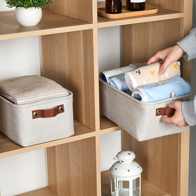 - Premium Material: These storage baskets are made with premium-quality fabric and thickened EVA. Soft&comfortable, sturdy&resistant, lightweight, and easy to use over time. The small collapsible storage bins are more suitable for storing towels and baby clothes.