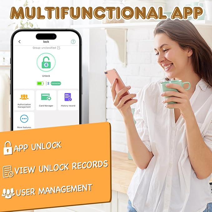 - đăMulti-Access OptionsăSeamlessly unlock your cabinet with the app, RFID card, or via NFC and supports iwatch unlock for ultimate convenience, eliminating the need for keys and passwords.