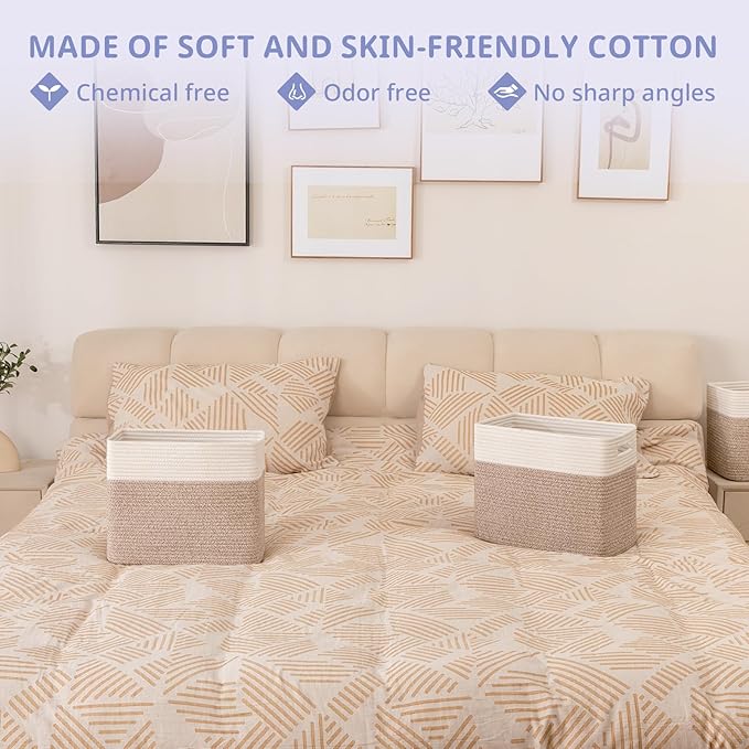 - 100% Cotton Rope Storage Baskets:OIAHOMY storage bins are made of high-quality natural cotton, chemical free and safe for kids and pets. It will not scratch your furniture and floor and more firm than plastic basket