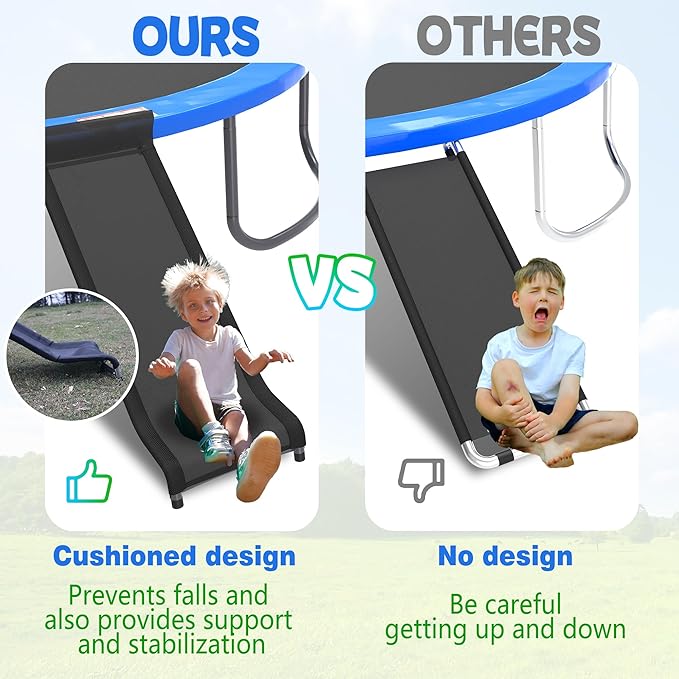 - 【HUMANIZED DESIGN】Deomod slide is designed with cushioning, so that your child's hips won't fall to the ground when sliding down, providing security for your child's safety, compared to a ladder, the use of the slide is more safe and reliable, which allows your child to slide safely on Deomod trampoline slides, creating unforgettable memories of laughter and unlimited fun