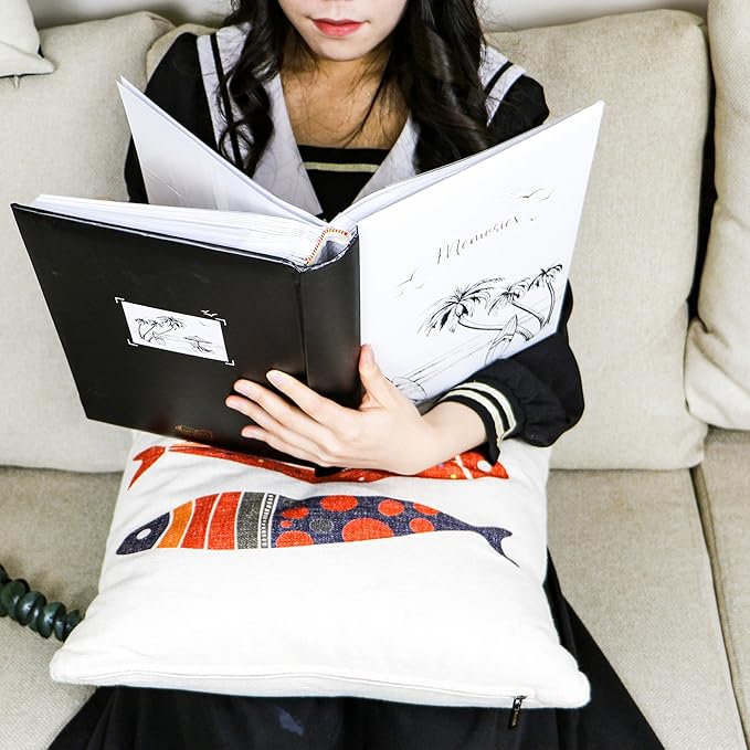 - Design: Beach Photo Album. Black and white color printed book cover natural beach design with gold stamping, slip-in high transparent PP pocket for horizontal or vertical photos, easy to collect your wonderful travel memories.