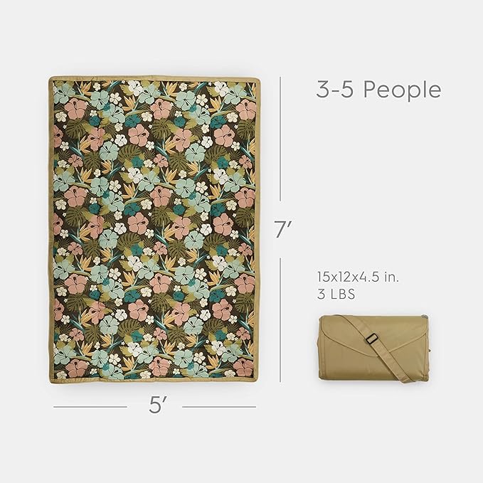 Little Unicorn 5'x7' Outdoor Family Picnic & Beach Blanket | Durable & Water-Resistant Fabric | Compact Fold & Easily Wipes Clean | Zipper Pocket (Hibiscus)