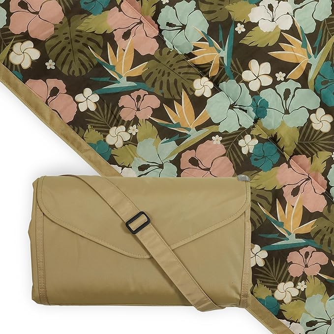Little Unicorn 5'x10' XL Outdoor Family Picnic & Beach Blanket | Durable & Water-Resistant Fabric | Compact Fold & Easily Wipes Clean | Zipper Pocket (Hibiscus)