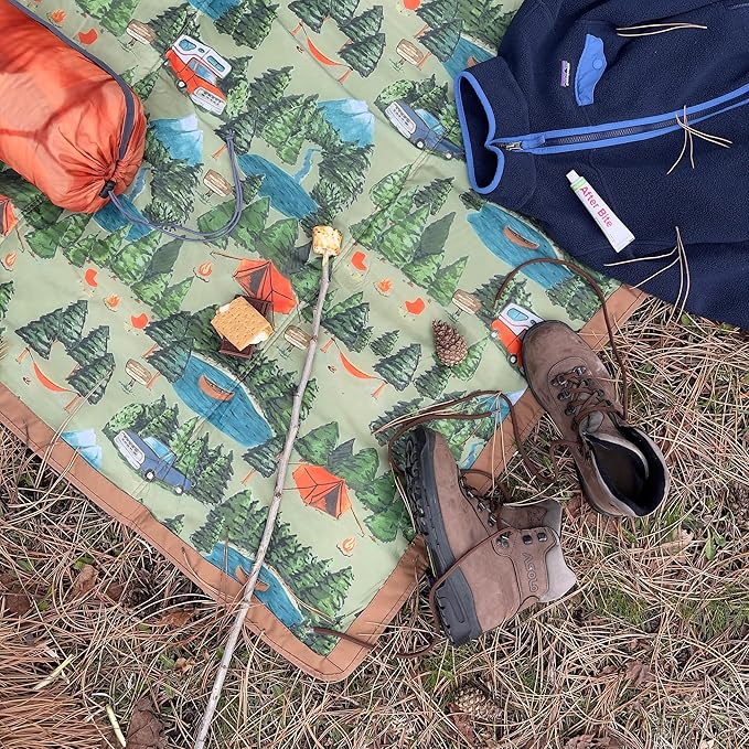 Little Unicorn 5'x7' Outdoor Family Picnic & Beach Blanket | Durable & Water-Resistant Fabric | Compact Fold & Easily Wipes Clean | Zipper Pocket (Camp)