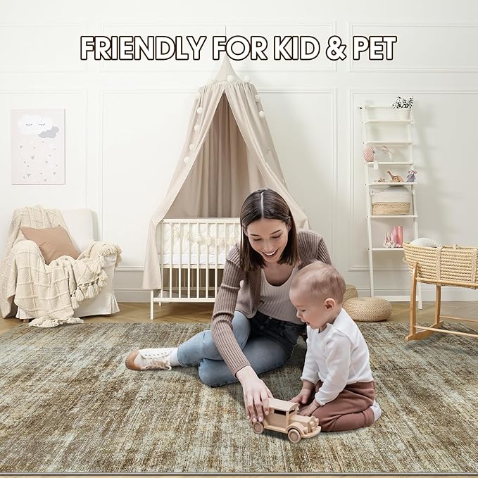 - 【Safety Non-Slip Rug】Area rugs 9x12 are designed with a specialized upgrade TPE backing, the non-slip bottom is made well and does a relatively good job of keeping the rug in place, preventing any accidents slips, trips, and falls, suitable for high-traffic areas or homes with children, elderly individuals, or pets.