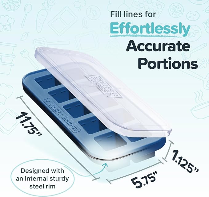 - EASY TO PORTION: This silicone 1 oz. freezing tray comes with convenient fill lines at 1 Tbsp, 2 Tbsp, 15 mL, 30 mL, and 1 oz. Each tray measures 11.75" L x 5.75" W x 1.25" H.