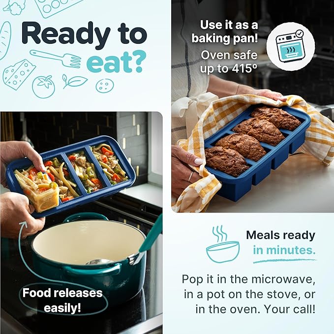 - VERSATILE: Our silicone freezer molds make baking, freezing, and storing both easy and convenient. They are oven-safe up to 415 F (without the lid) and can be washed in the dishwasher.