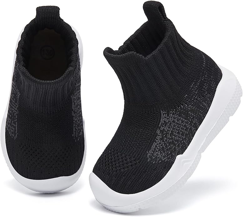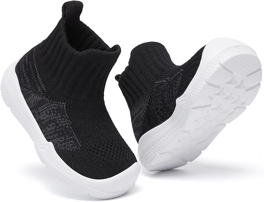 - Friendly Sock-like Upper: Sock-like stretchy textile construction upper hugs the foot to keep them comfortable and flexible when babies are on the move. Baby sock shoes made of soft fabric knit are also friendly to the skin, healthy, and very safe for infant babies.