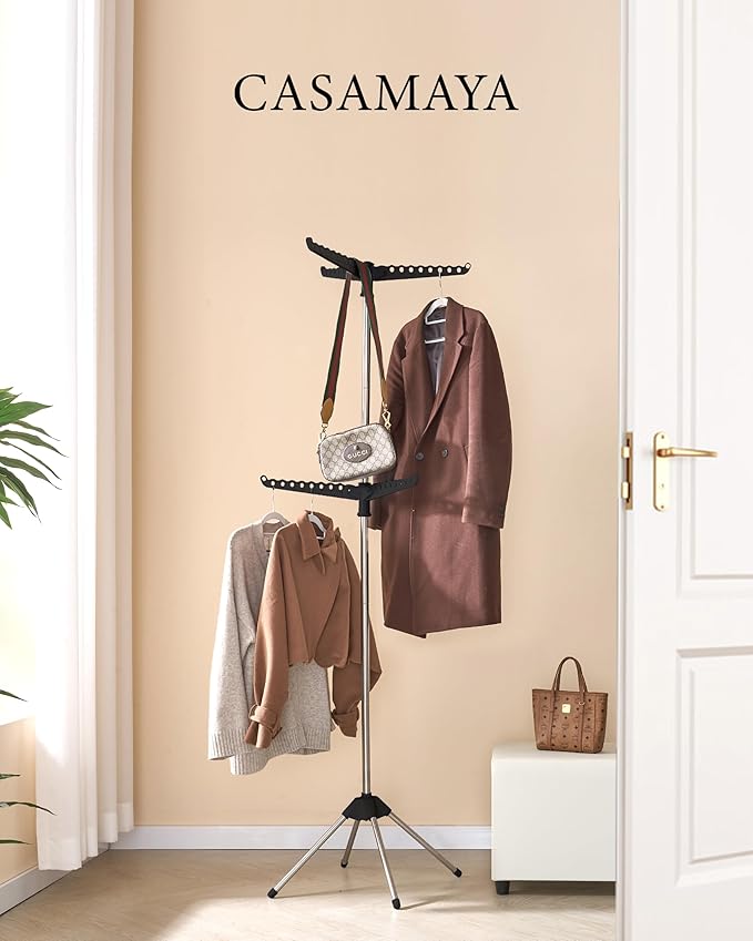 - [Strong and Durable] This clothes drying rack is made of thick stainless steel tubing, rust-proof and sturdy, four support feet design provides the best stability, overall weight capacity 66 pounds