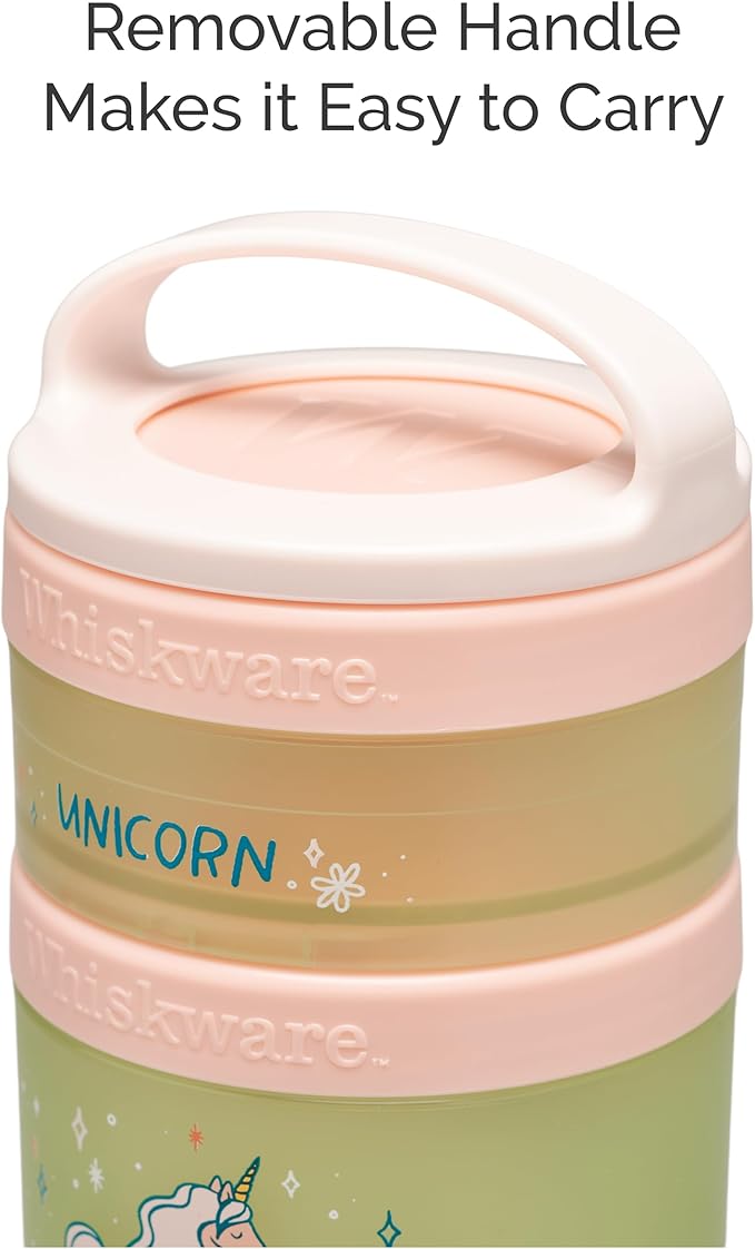 Whiskware Stackable Snack Containers for Kids, Set of 3 Stackable Snack Cups, Unicorn and Sharks Designs
