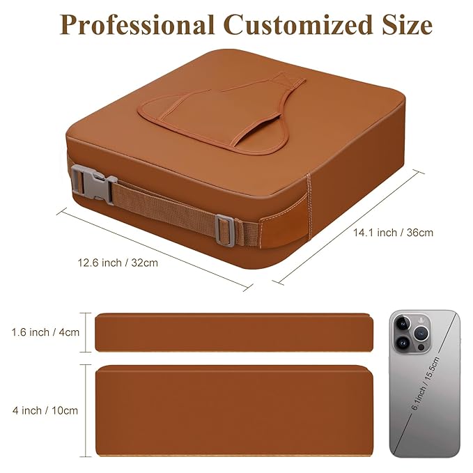 - 【Booster Seat Suitable Size】The baby booster seat has a backrest size of 14.1x12.6 x 1.6 inches and a cushion size of 14.1 x 12.6 x 4 inches, specifically designed for most dining seats. At the same time, the length of the bottom seat belt is appropriately increase, so the cushion can be better fixed on the most dining chair.