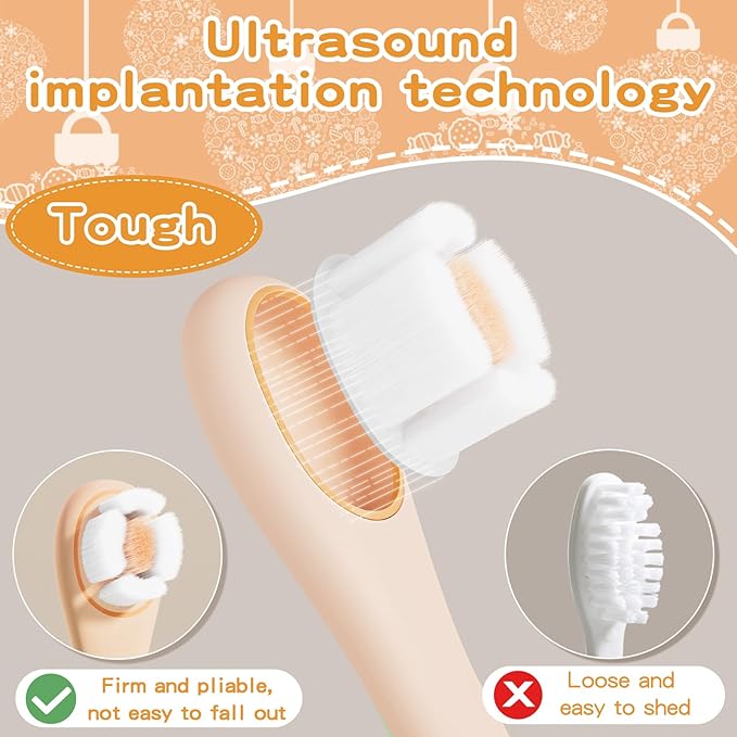 - SOFT BRISTLE TOOTHBRUSH GENTLE TO BABY MOUTH: Super soft bristles can gently and efficiently clean baby's teeth and gums, giving baby a clean teething mouth. This baby toothbrush is made of soft, good quality bristle material with ultrasonic embedding technology, the toothbrush bristles are not easy to fall off