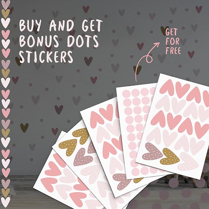 - ❤️ Package Content: Pink hearts wall decals come in a pack of 5 sheets. Includes: polka dots decals and heart stickers.