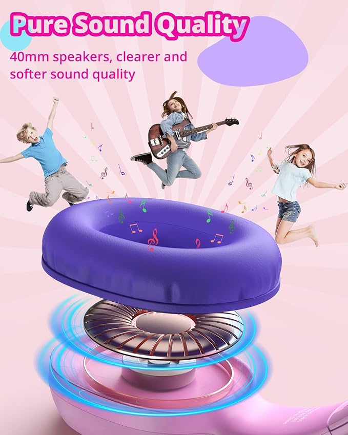 - 【85/93dB Safety Volume Control】: Designed for hearing protection, the volume of kids headphones can be limited to 85dB to prevent damage to children's ears in daily life. When traveling, such as airplane roars, car noise, etc., the volume can reach 93dB, the sound is clearer but still safe.