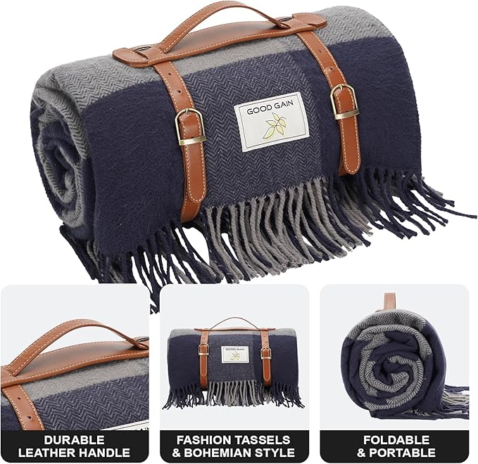 - PRACTICAL 2 in 1 Design- Our picnic mat is the perfect solution for picnics throughout the year. Our unique two-in-one design allows our Boho camping blanket to serve multiple purposes.Complete with a 100% acrylic body and PU leather handle, style, beauty, and practicality are seamlessly combined. We use tassels and unique herringbone lines as decoration to make the large picnic blanket extra special with multiple elements.the black bottom layer serves as a waterproof mat, providing protection a