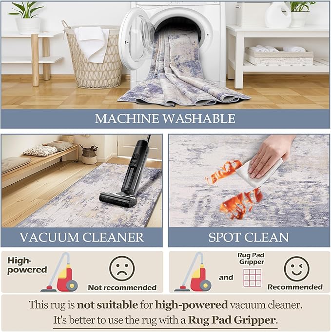 - Tides Series โ Effortless style that flows with your life.This modern machine-washable non-slip rug features reinforced edges and a low-pile design that resists dirt. Its water-repellent surface makes spills easy to clean - liquids bead up for quick wiping. Simply machine wash in cold water (no bleach) to refresh. The non-slip backing keeps it securely in place. A perfect blend of function and contemporary design for active homes.