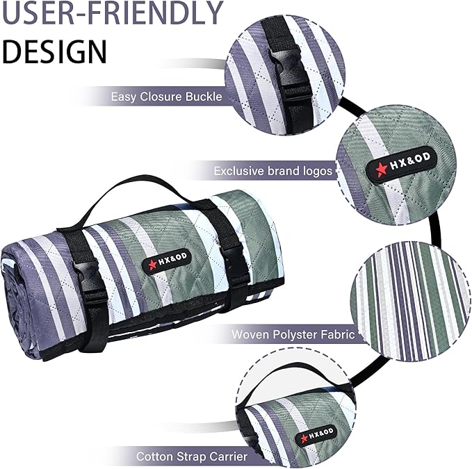 - ☀ 【Waterproof & Machine Washable】Outdoor picnic blanket is super easy to clean due to its durable and waterproof backing, easily shake & wipe off dirt, mud, wet grass, and beach sand. And you could put it into washing machine to save your time and free both hands.