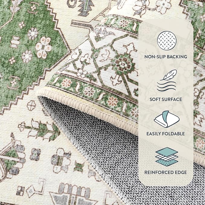 Lahome Boho Green Hallway Runner - 2x6 Washable Kitchen Runner Rug Non-Slip, Ultra-Thin Vintage Print Carpet Rug for Entryway Bedroom Laundry Room (Green, 2'x6')