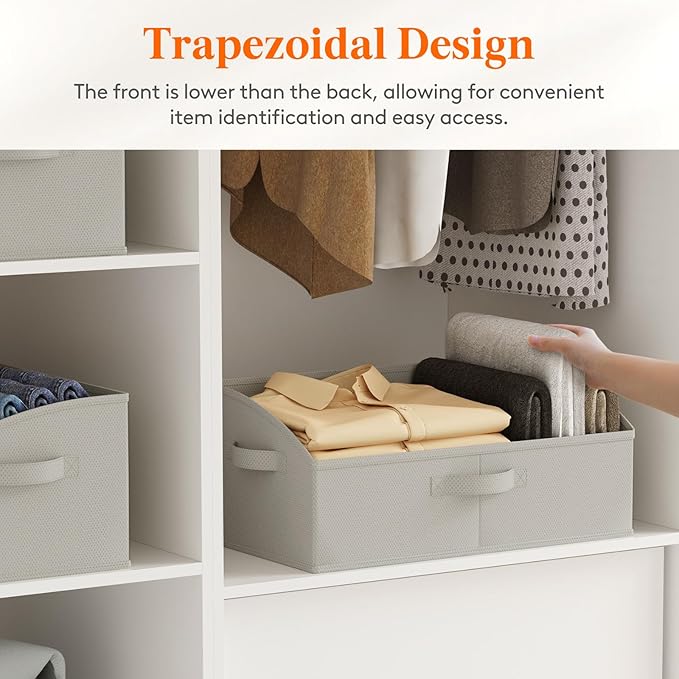 Lifewit Storage Baskets for Shelves, 6 Packs Non-woven Fabric Trapezoid Closet Organizer Bins with Handles, Foldable Clothing Containers Box for Clothes, Toy, Towel, Book, DVD, Hats, Large-Light Grey