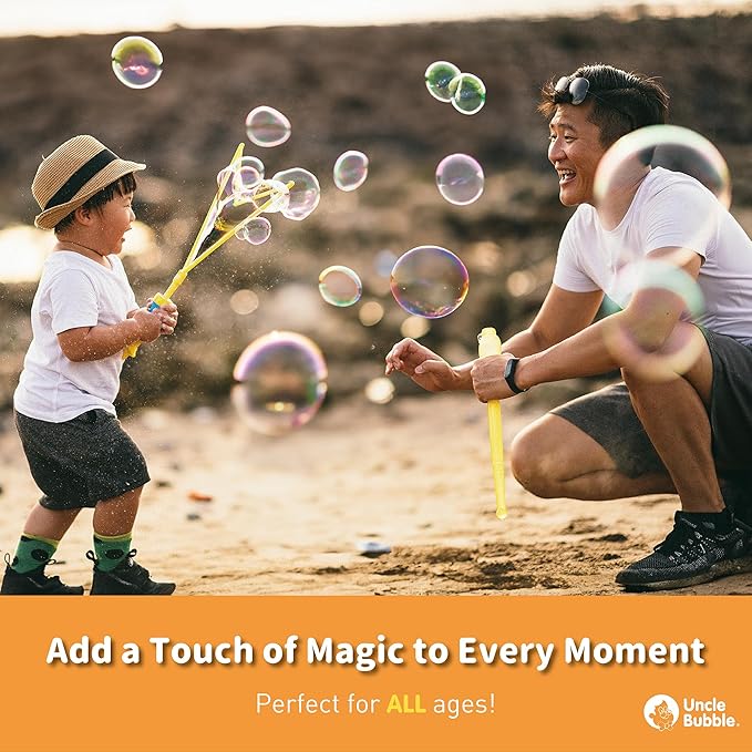 - 【PERFECT FOR ANY OCCASION】- Ideal for outdoor activities, parties, festivals, and more, Uncle Bubble's bubble solution is the perfect addition to any event. Whether it's a birthday party, wedding, or school classroom activity, our bubble solution ensures endless entertainment for everyone.