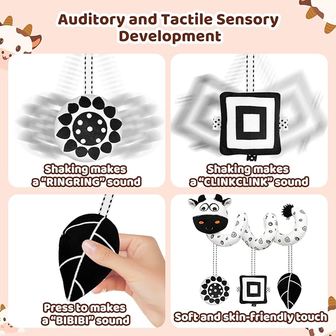 • Stroller Toys for Babies 0-6 Months:Designed for active play, these carseat toys hanging easily attach to strollers, cribs, and car seats, transforming into a versatile car seat toy and crib toys hanging system. They deliver constant, engaging stimulation, making them ideal as stroller toys for infants on the move.
