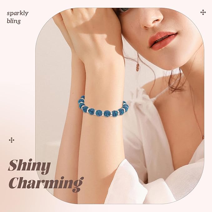 160pcs 10mm Rhinestone Beads for Jewelry Making, Blue Zircon Shiny Round Disco Ball Beads Bulk, Sparkle Crystal Clay Christmas for Bracelet Baseball Necklace Earring Crafting and DIY