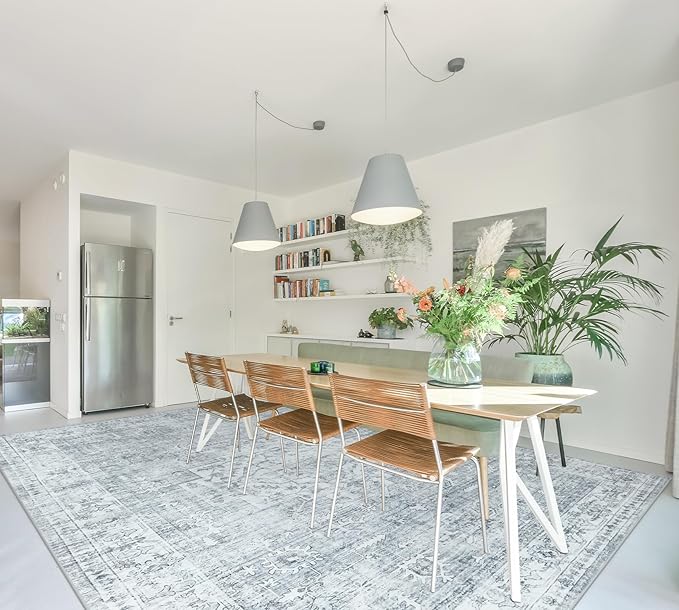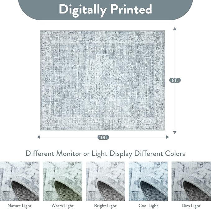 LIVEBOX Washable Area Rug 8x10 Rugs for Living Room Bedroom, Non-Slip Boho Neutral Carpet for Dining Room Office, Low-Pile Farmhouse Soft Carpets for Kids Nursery Room Playroom, Grey