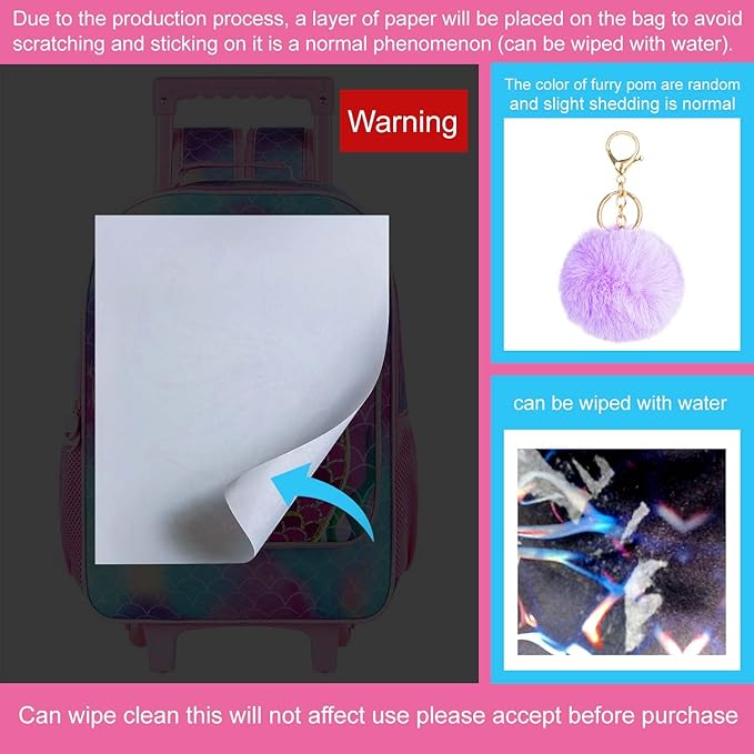 - Girls Rolling Backpack Set: Urable wheels with low noise, comfort and soft handle, smooth and durable zipper provide you a relaxed and happy fulfillment. This rabbit backpack with whells brings more joy to kids.