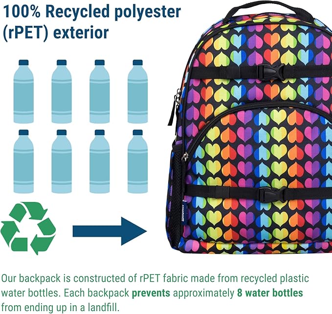 Wildkin ECO rPET 17-inch Large Backpack – Sustainable, Padded, Adjustable – Rainbow Hearts